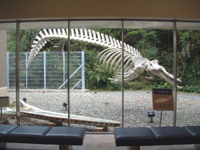 今日は「海の博物館」に行ってみましょう。 この博物館は当館から車で約10分の、吉尾という地区にあり、「勝浦海中公園」の向かいにあたります。 最近できたばかりで、海の目の前。端的に言うなら、当館と交換してほしいくらいの建物、ということです。 後ろ側の建物の「いかにも」的なイメージに対して、手前の石垣がデザイナーさんの自己主張でしょうか。れっきとした県立博物館の分館である「海の博物館」の名前に恥じないダイナミズムを感じます。 受付で笑顔が素敵なお嬢さんに入館料200円(大人)を支払ってチケットを受け取ると、「順路」の看板が見学コースをご案内。否が応にも期待が高まります。 ・・・と、展示室前のロビーで! 中庭にいきなりな展示物発見。 説明書きによれば、ツチクジラの骨格だそうです。 ツチクジラは、捕鯨が禁止されていない(獲っていい頭数は決められているそうですが)クジラで、現在も漁が行われています。勝浦の近所では、南房総市和田町などが有名です。 この骨格だけ見ても、クジラはなかなかイメージできないですよね? 私は「日本むかしばなし」のオープニングで出てくる“龍”を想像してしまいました。説明書きにそんなことが書いてあるはずないでしょうけど。 (つづく) たまには暴露系舞台裏話でひとつ進行しようと思います。 ああ、私のアバウトさと頑固なこだわり(節操なしともいう)がにじみ出てる写真ですね・・・。 実は、料理写真の撮影現場だったりします。 昼間だというのにカーテン閉めて、照明といえば変な電球と部屋の蛍光灯だけですね。使わない背景用の紙が左に転がってます。 板前さんが作った料理をいかに美味しそうに撮るか。腕が試される、というか、後ろで腕組みをして包丁持って唸ってないか、とか、吹き矢が飛んでこないか・・・とか戦々恐々としながら、アングルを変えたりして何百枚と撮っている(デジカメさまさまです)んですが、いかんせん料理は生もの。時間がたてば、その分美味しそうなイメージが目減りします。まさに時間との戦いです。 できあがりイメージは、こちら などをご覧ください。美味しそうに見えるでしょうか? 料理を召し上がるとき、こんな裏話も思い出していただければ幸いです。 ・・・いや、思い出さなくとも、お早めにお召上がりください。