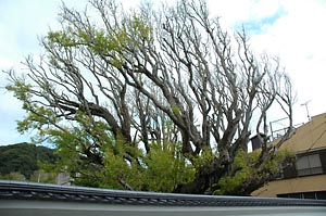 突然ですが、「勝浦の名物をひとつ紹介してください」と言われたら、何をおすすめしますか? かつお、きんめ、朝市、漁港、・・・ホテル三日月?(笑) 私なら、コレをおすすめします。 それは、「いちょう」。 お寺の数だけいちょうがある、と言っても過言ではありません。昔から、お坊さんの仕事のイメージと言えば、門前に落ちているいちょうの葉っぱをセッセと掃く姿。市内のお寺はいずれも歴史が長いですから、おのずといちょうも大きいわけです。 その中で今回は、商店街の裏手にある高照寺(こうしょうじ)の乳公孫樹(ちちいちょう)をご紹介します。 まずその外観。外塀から見える、枝、枝、枝。 普通のスラリとしたいちょうとは一線を画す、非常に自由闊達な性格が垣間見られます。 脳の毛細血管ではありません。 一見ばらばらなようで、実はほぼ同じ方向を向いています。なんだか夏休みのラジオ体操を見ているようです。 いや、千葉県だけに、なのはな体操、かもしれません。 手前に「勝浦朝市発祥の地」の碑があります。 この門を入って右手に、件の乳公孫樹があります。 (墓地の中を通るので、お寺の方に声をかけたほうが無難そうです。) この「乳公孫樹」は、枝から多くの乳柱がさがっており、これが乳房に見えることから名づけられたそうです。 むかしむかし、お乳が出なくて困っている女性に、あるお坊さんがお経を唱えたところ、お乳が出るようになり、子供がすくすく育ちました。 ・・・そしてそのお坊さんが亡くなった後、1本のいちょうを植えたところ、乳柱がどんどん増えて大きくなり、お乳が出ない女性の信仰を集めたそうです。 めでたし、めでたし。 ・・・おっと、終わってはいけませんね。 この乳公孫樹の樹齢ははっきりとわかってはいませんが、案内板によれば、昭和初期に鑑定した段階で「千年は経っている」と推定されたとか。お寺にいらした方いわく、「最近は葉っぱが少なくて、ちょっとかわいそう・・・。」とのことですが、千年以上の年月を経ていまだにこうして葉っぱをつけているあたり、ものすごい生命力を感じます。 女性の方は勿論ですが、男性もこの生命力にあやかりたいものですね。 朝市観光の行きかえりに、ぜひこの乳公孫樹へのお参りを加えてみてください。 もちろん、ご宿泊・お食事は当館でどうぞ。 三日月本館・魚祭(うおさい)・三日月苑の詳細なご案内は→((www.mikazuki.co.jp/m-ryokan/)) 朝からカメラを落下させてしまいました。気分は凹んでも腹は出てます、めたぼ太郎です。 気を取り直して、さあ、参りましょう。 今日の魚祭(うおさい)のオススメは、ブーメラン、いや、吉野家のマーク・・・もとい、「沖さわらの柚庵焼定食」(1,200円)。 見てください、つやつやしたこの照り。 私も食べましたが、柚子醤油に漬け込んだだけあって、さっばりしていておいしいです。昔食べた幕の内弁当を思い起こさせてくれる、なんとなく懐かしい、安らぎをおぼえそうな味です。 魚の皮が苦手(皮ファンの皆さん、ごめんなさい。)な私には、一片の肉さえ残らずきれいに剥がれる皮は、感動的ですらありました。 もちろん魚の鮮度とサイズは保証つきですよ。 また「これは!」というのが入荷しましたら、ご案内します。お見逃しなく。 三日月本館・魚祭(うおさい)・三日月苑の詳細なご案内は→((www.mikazuki.co.jp/m-ryokan/)) 早いもので、今年も残すところ70日ほどとなりました。 |