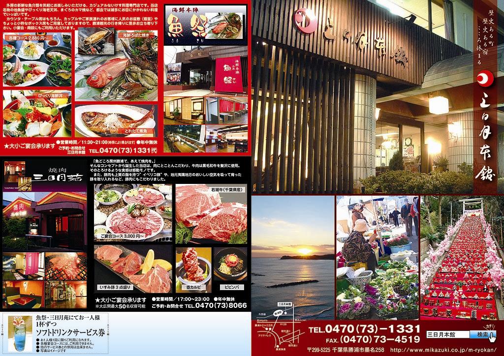 房総は勝浦駅前、三日月の名前なのに気軽な宿「三日月イン」と、元気一杯な和食店「海鮮本陣 魚祭(うおさい)」から発信。